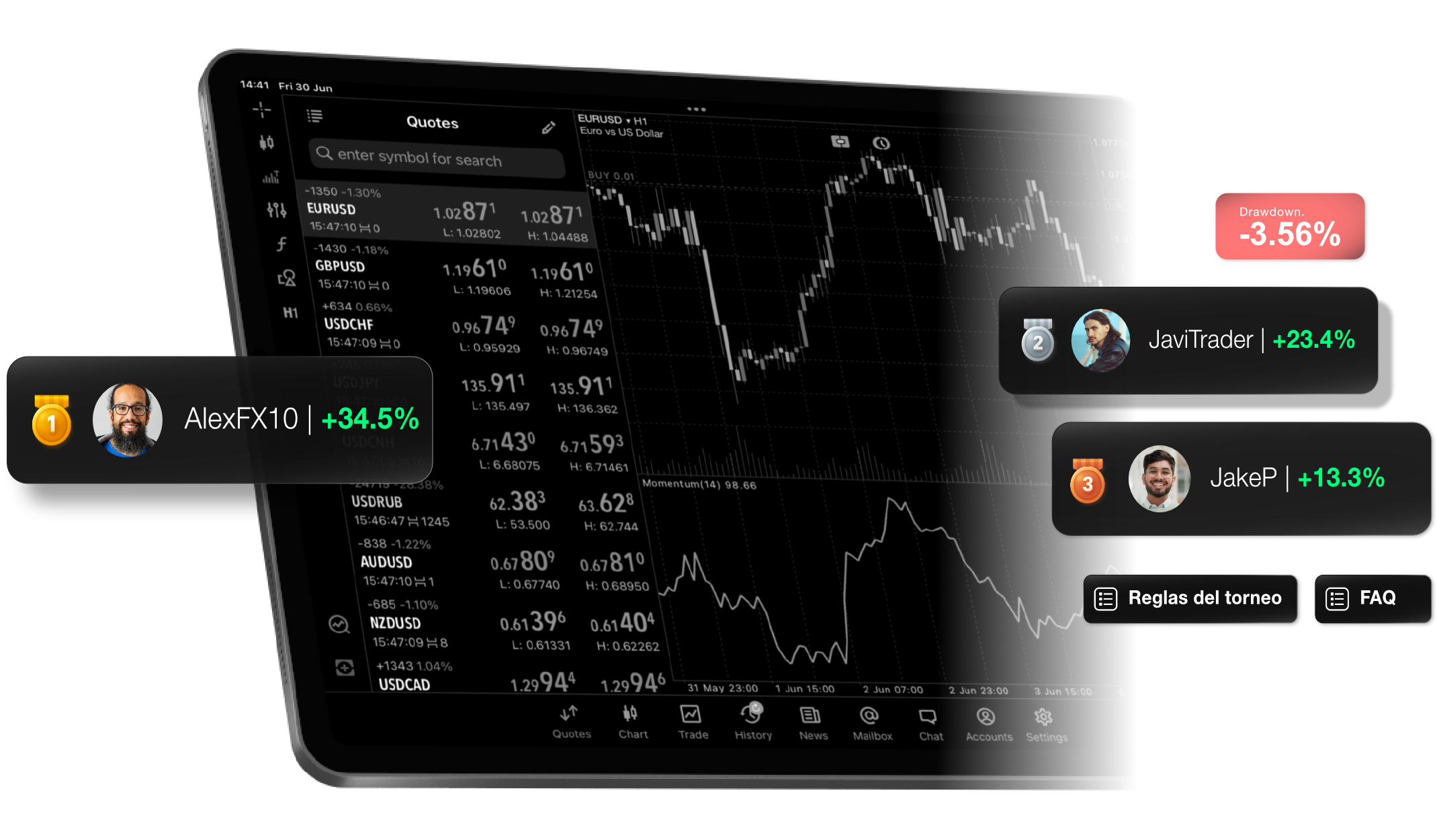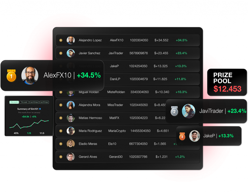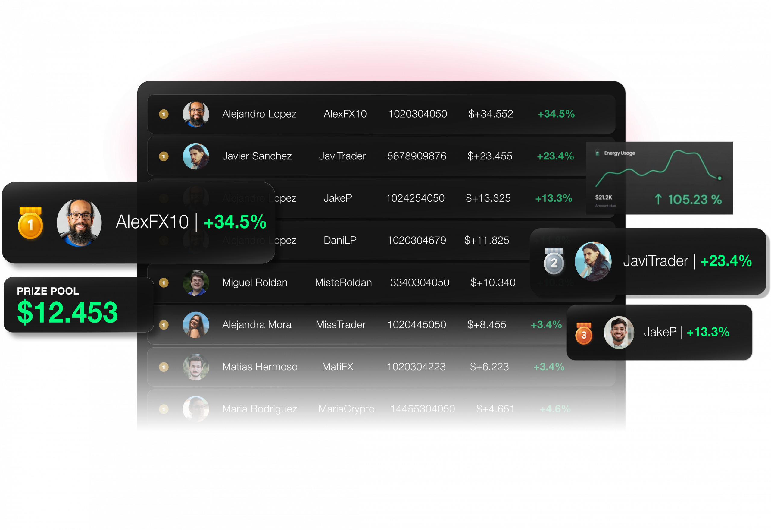 Demuestra tu talento como trader y compite cada mes en torneos globales, escala en el ranking y gana premios reales sin arriesgar tu capital.
